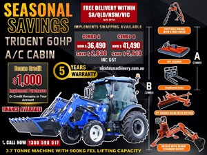 2025 TRIDENT PLUS SYNCHROMESH MODEL 75HP 4WD A/C CABIN TRACTOR WITH 4IN1 BUCKET COMBO DEAL 5 YEARS LABOUR AND PARTS WARRANTY AUSTRALIA WIDE DELIVERY & SUPPORT